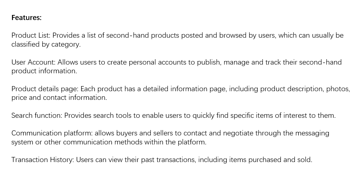Ultimately, the secondhand trade website for students aims to provide a practical solution for budget-conscious individuals, promote sustainable consumption practices, and create a vibrant online marketplace conducive to the unique needs of the student demographic.